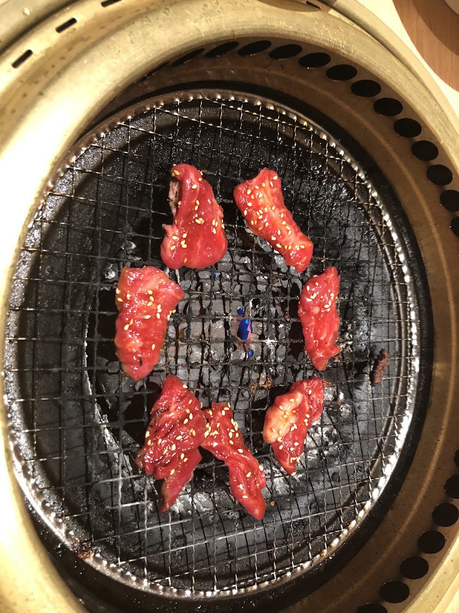 The restaurant isn’t just about savory grilled dishes; it also offers a refreshing selection of sides like their 冷麺 (Cold Noodles), perfect for balancing out the richness of the meats. Don’t miss the chance to taste the 黒毛和牛ロース 脂身でしたが 笑 (Kuroge Wagyu Roast with Fatty Marbling). This melt-in-your-mouth dish showcases the rich marbling of wagyu beef, creating a truly indulgent experience that will leave you craving more.