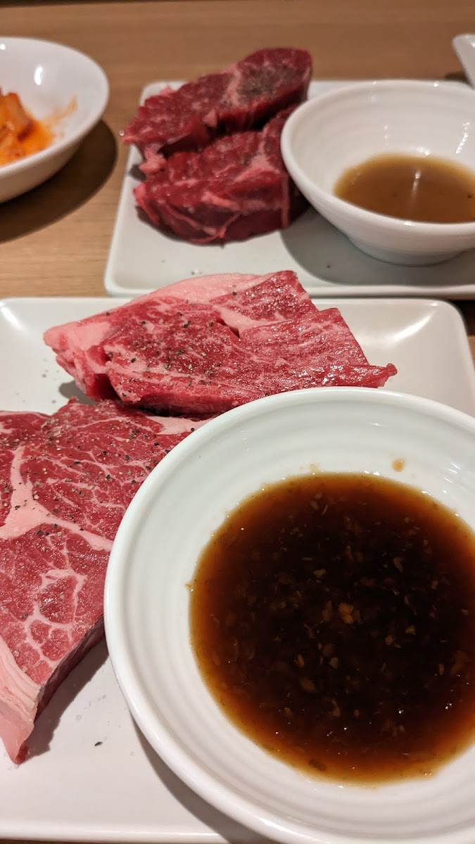 The restaurant’s signature dishes are a feast for the senses. For those who appreciate perfectly grilled meats, the ワンカルビ ロース ステーキ (One-Karubi Roast Steak) is a top choice, delivering a smoky, tender steak experience that truly stands out. Also, the ハラミ ステーキ (Harami Steak) is another popular option, packed with rich flavor and a juicy texture that can’t be beaten. If you’re in the mood for something heartier, try the 厚切り上ロースステーキ (Thick-Cut Upper Sirloin Steak). It offers a delightful balance of juiciness and tenderness with every bite.